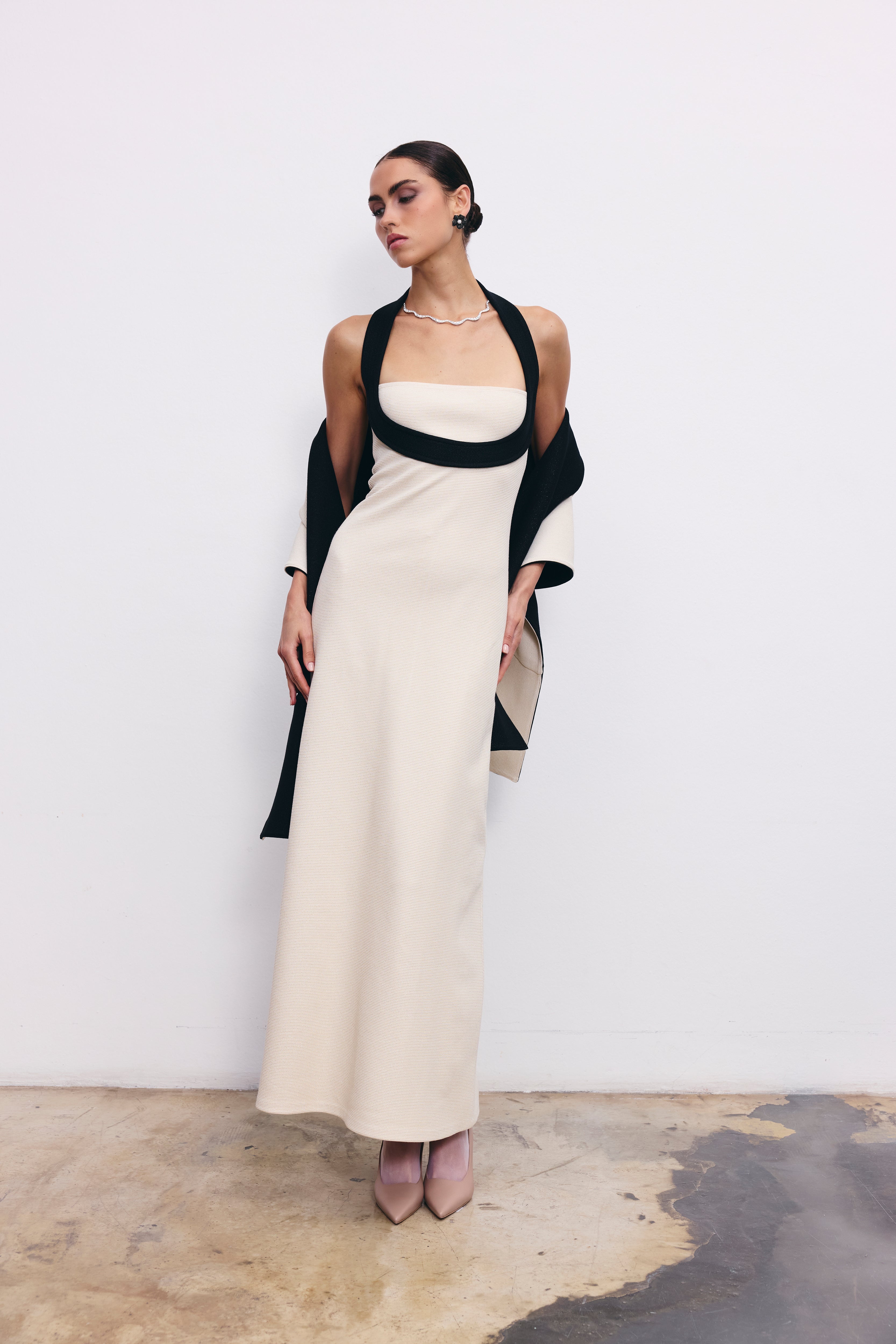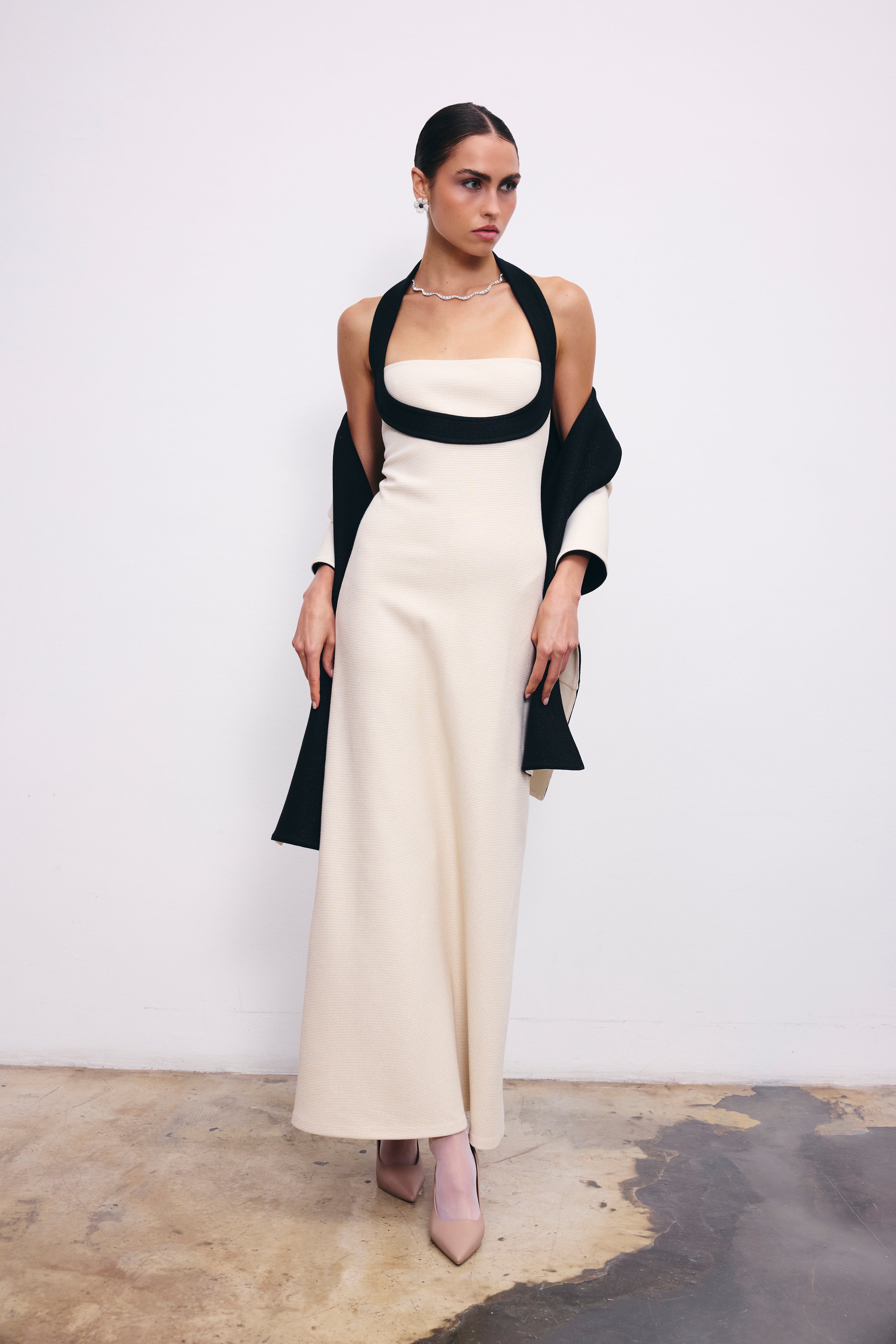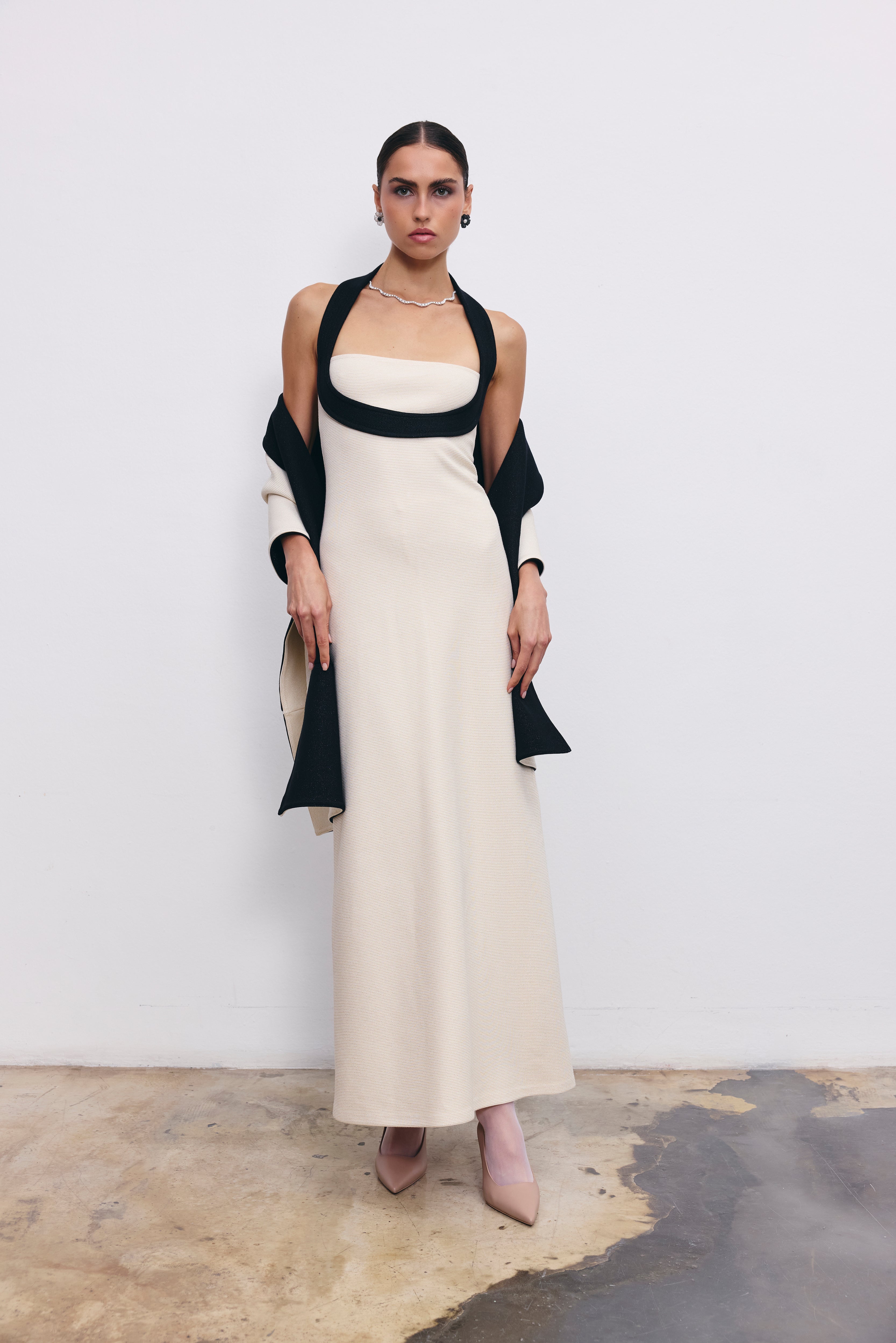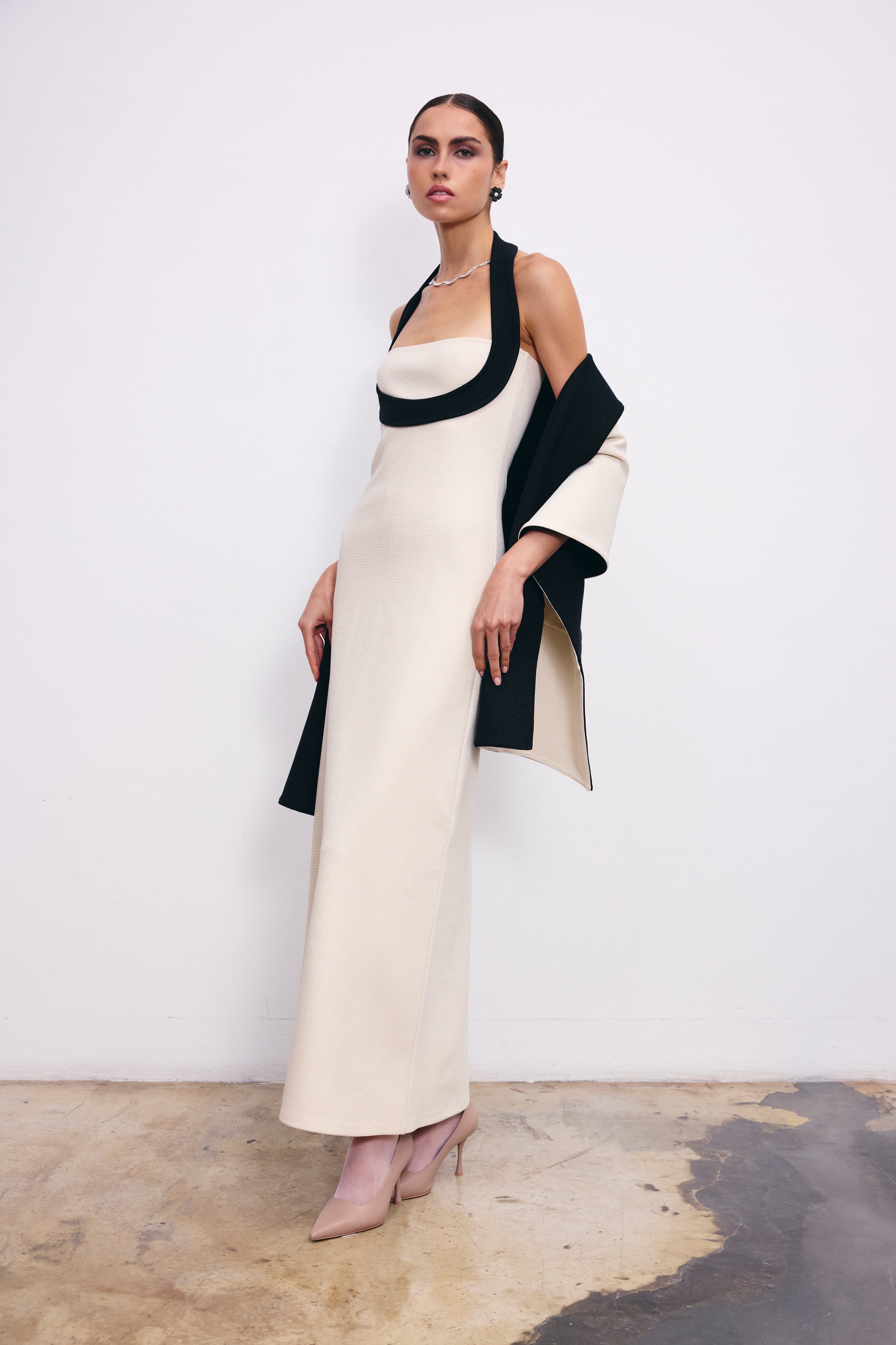 Zamanın ötesinde bir şıklık sunan örme kumaşla hazirlanan Sophie’nin yuvarlak halter yaka kesimi ve bandaj silhuetiyle kendinizi çok şık hissedeceksiniz. Arka ortada yer alan gizli fermuar sayesinde giyimi kolay ve görünümü kusursuzdur.