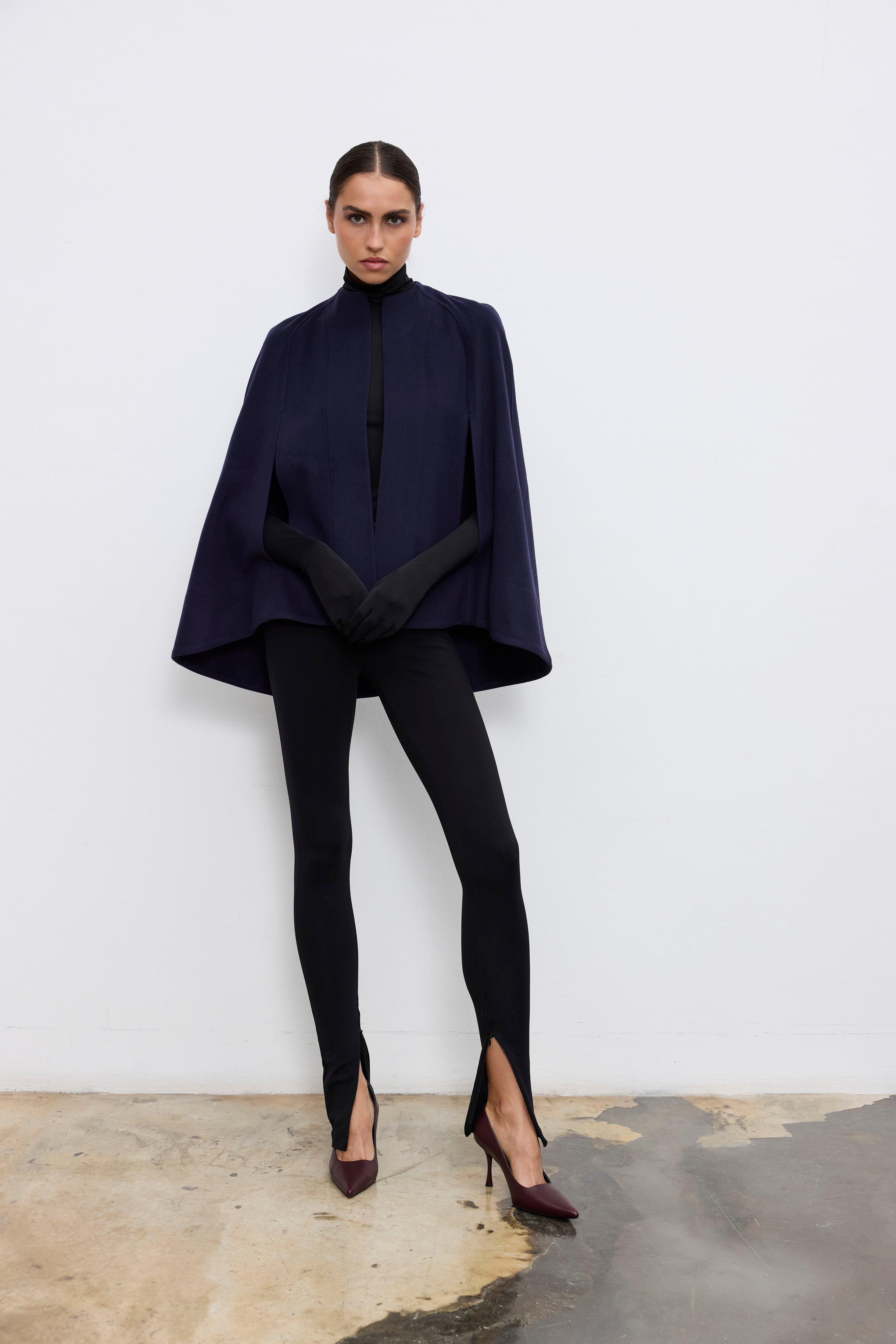 1960’ların ikonlarının siluetlerinden ilham alan dikkat çekici bir dış giyim parçası. Beth pelerin, sade yaka kesimi, zarif kol açıklıkları ve dökümlü A-formu ile hem yapılı hem akışkan bir duruş sunar.